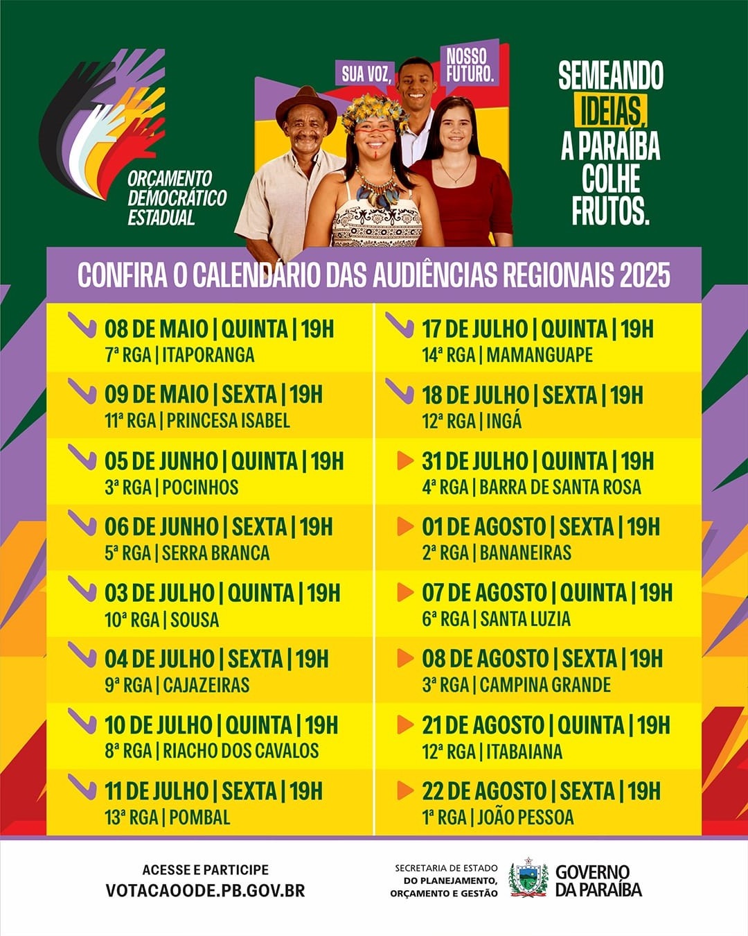 | 08/04/2025 | Governo lança Ciclo de audiências do Orçamento Democrático no próximo dia 22 |